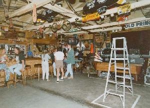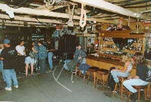 Eddie and Ron ran a T-shirt printing operation which they used to produce a bunch of shirts for the occasion that they distributed free to those attending the shows. Their design included the Old Princeton Landing logo on the front and a screen printing of the 'Echos' poster advertisement on the back. Richie is on the left. At the end of the bar lies the door to the courtyard, which served as the backstage area during the shows, and contains a few picnic tables and benches.
